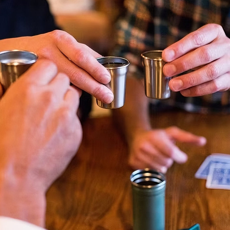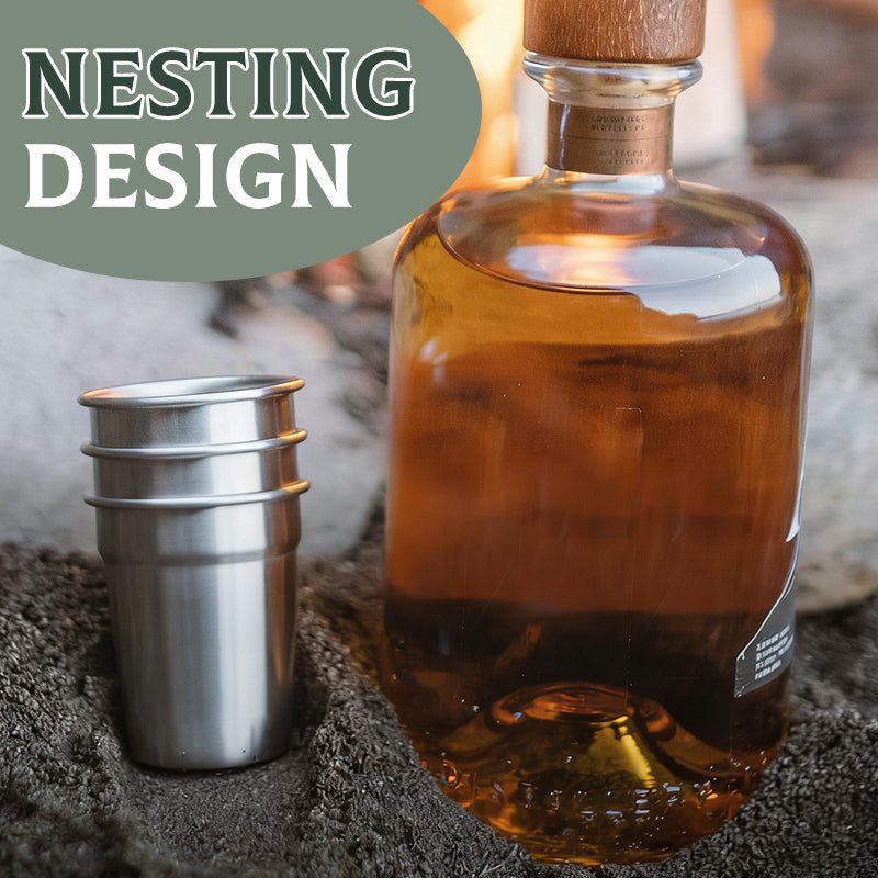This all-in-one nesting shot glass set is the outdoor enthusiast's best friend. Compact, rugged, and ready for action, it packs four cups into one sleek container. Whether it’s a morning espresso shot or an evening nightcap, bring the party to the great outdoors! 🔥