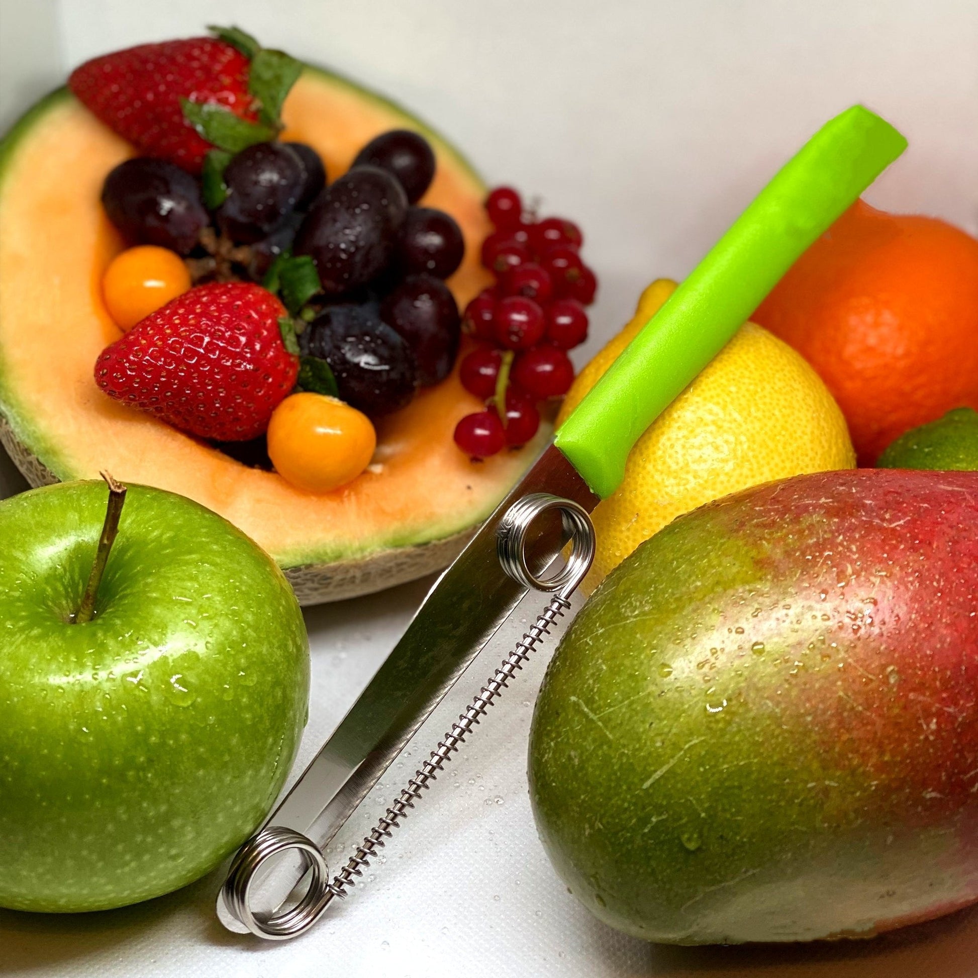 Instructions for Use: Hold the knife in your working hand and insert the blade into the spacer ring; make sure the spring always points upwards, i.e. it is above the blade when you pull the knife towards you.